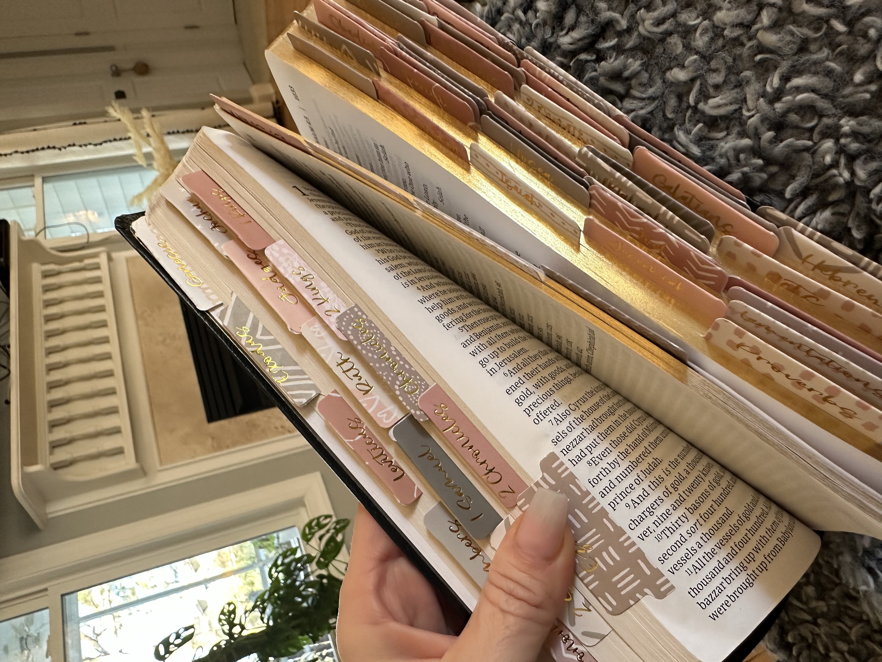These self-adhesive Bible tabs have matte lamination for extra protection and longevity. Simply choose the placement option that best fits your Bible or desire, and apply.The perfect way to make your Bible functional and beautiful!