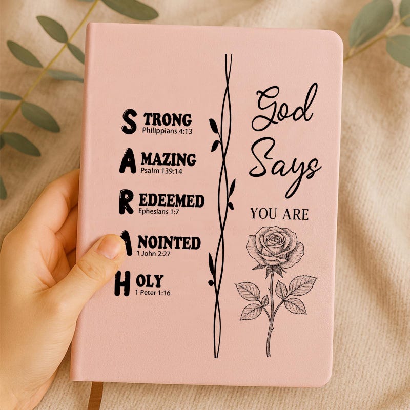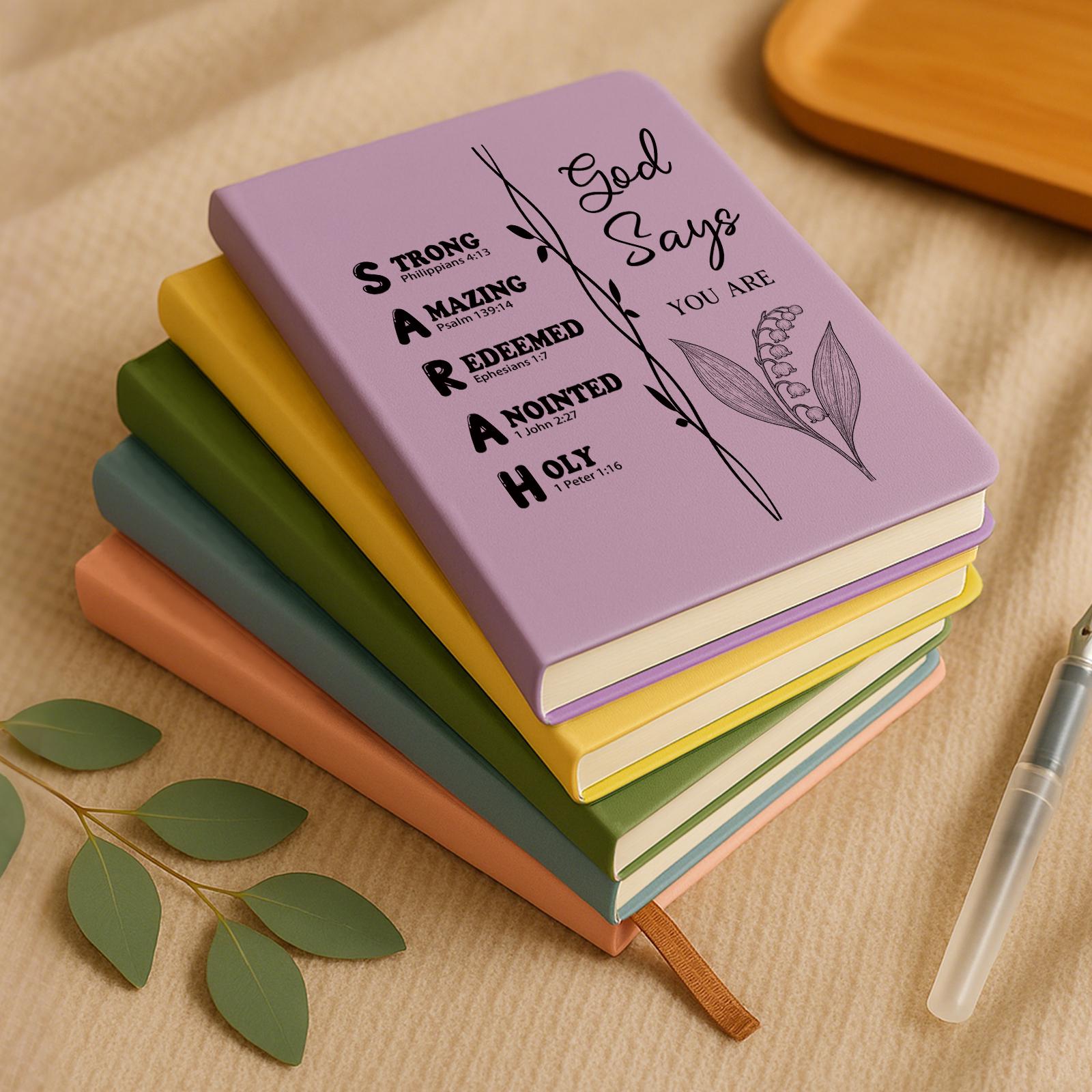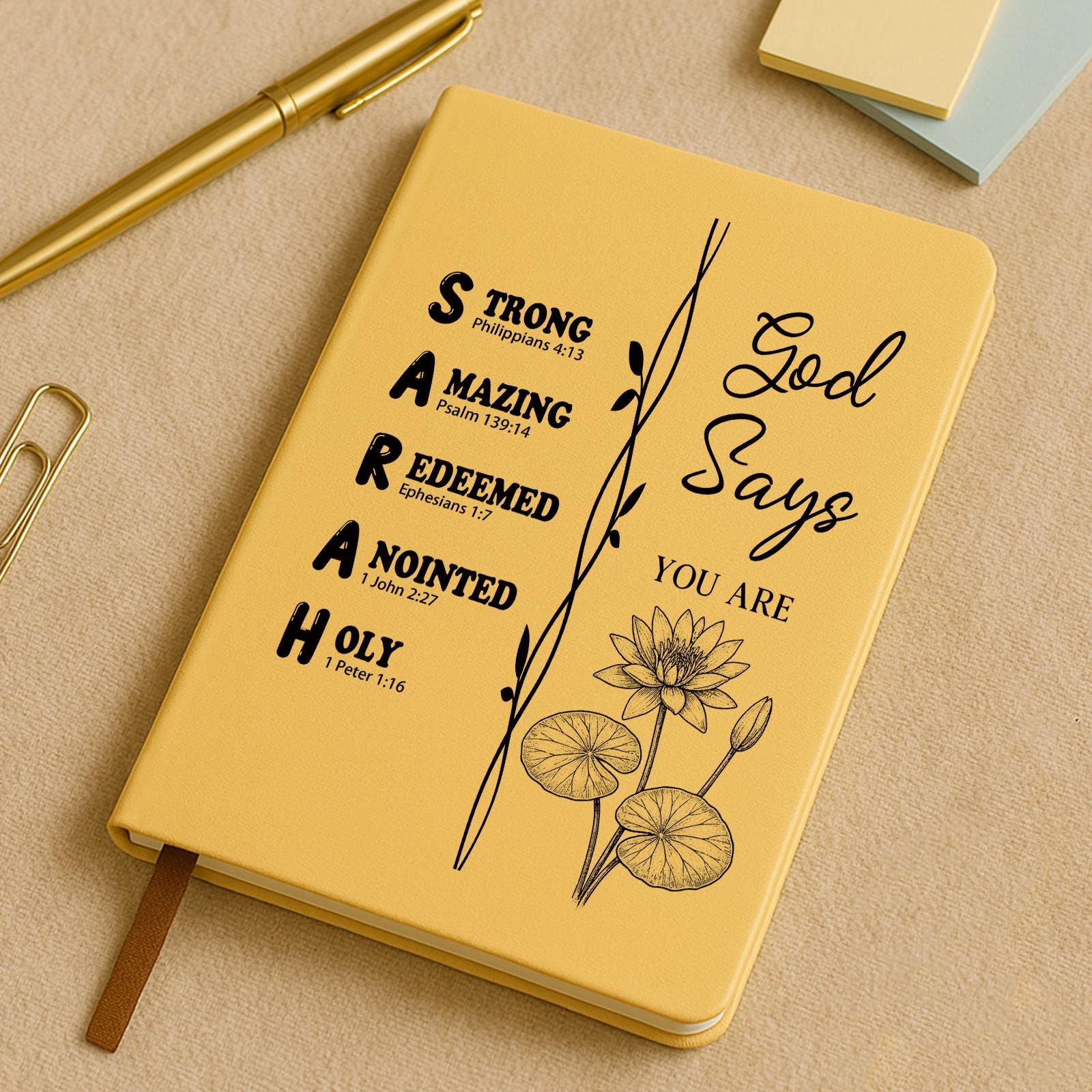 Personalized Christian Name Journal With Bible Verses, Custom Scripture Gift for Women, God Says You Are Bible Verse Journal, Religious Gift