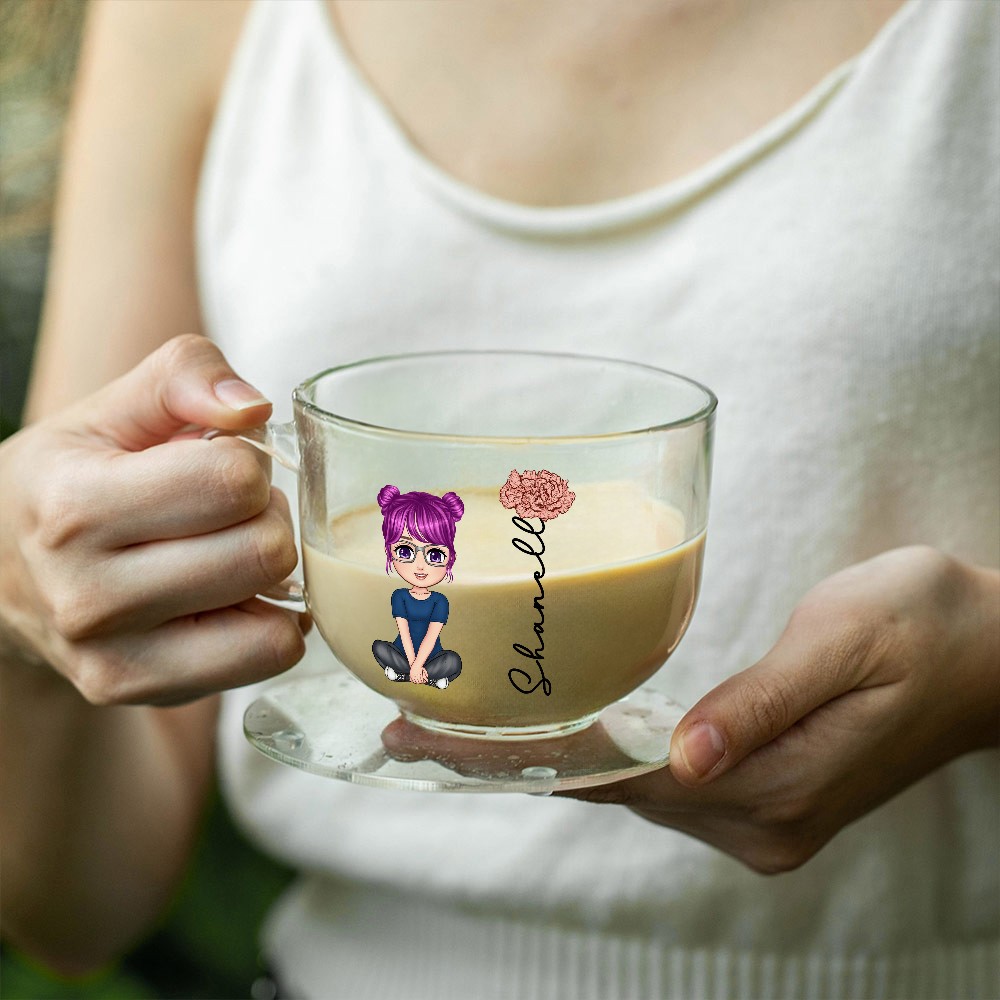 Custom Design - This charming coffee mug can be customized with a name, beautiful birth flower, and cute cartoon character, making it a unique and thoughtful drinkware. There are also coasters for you to choose from, adding an extra touch of style and protecting surfaces from heat and spills.