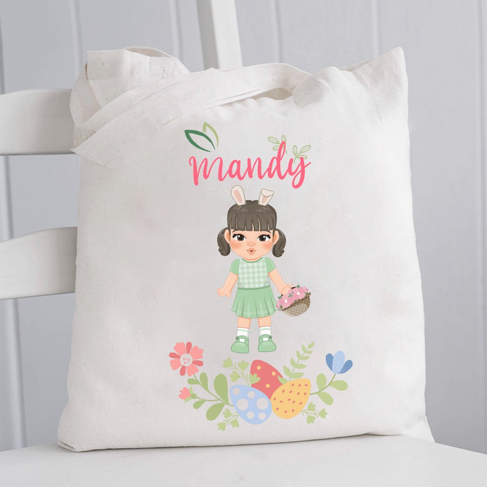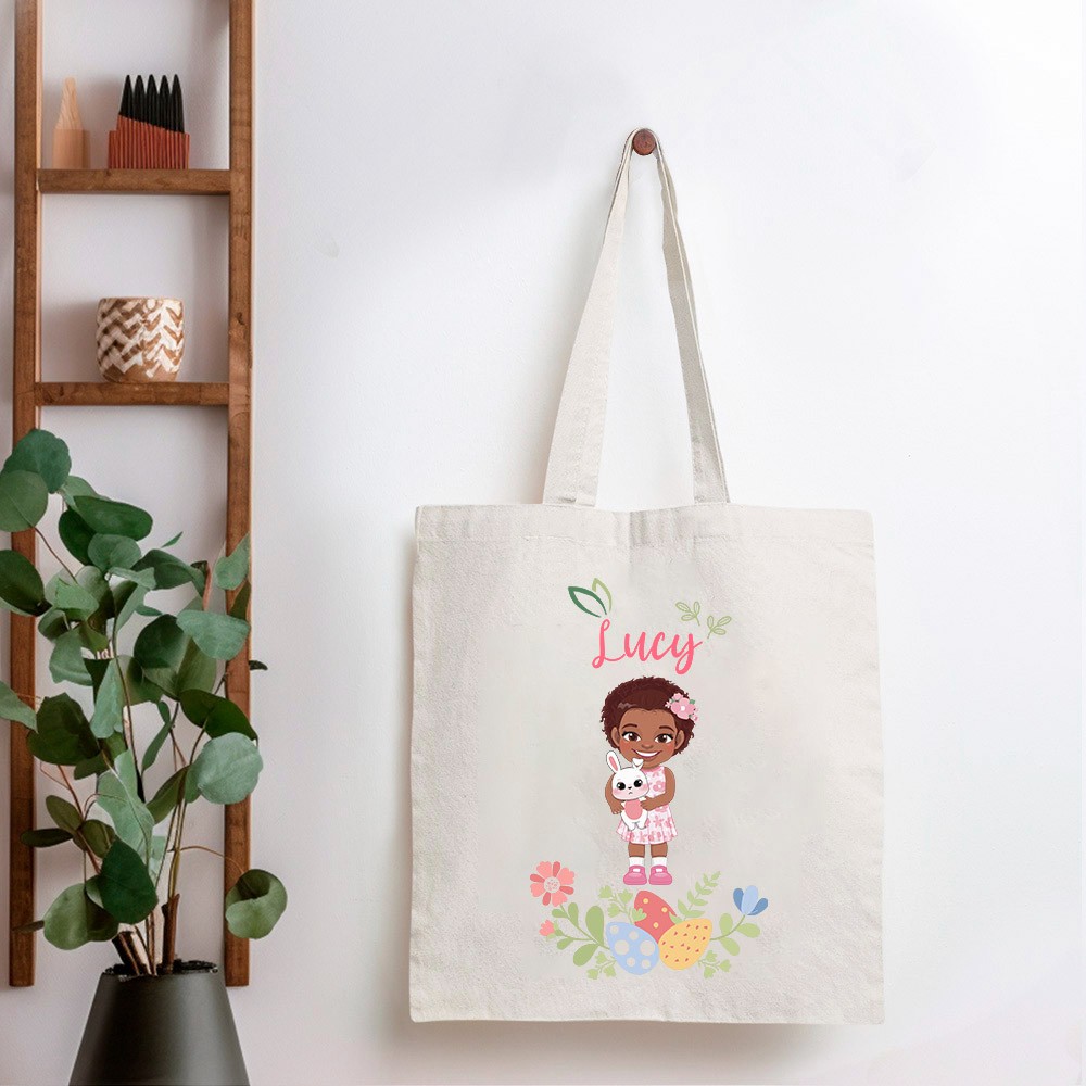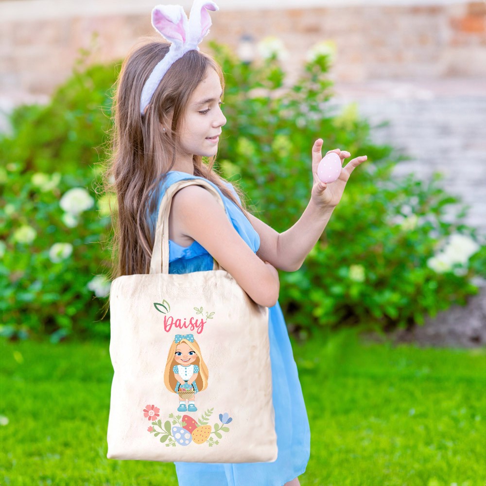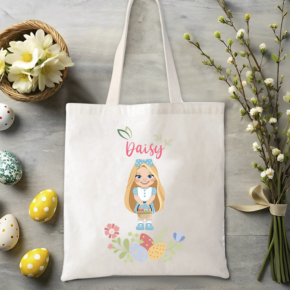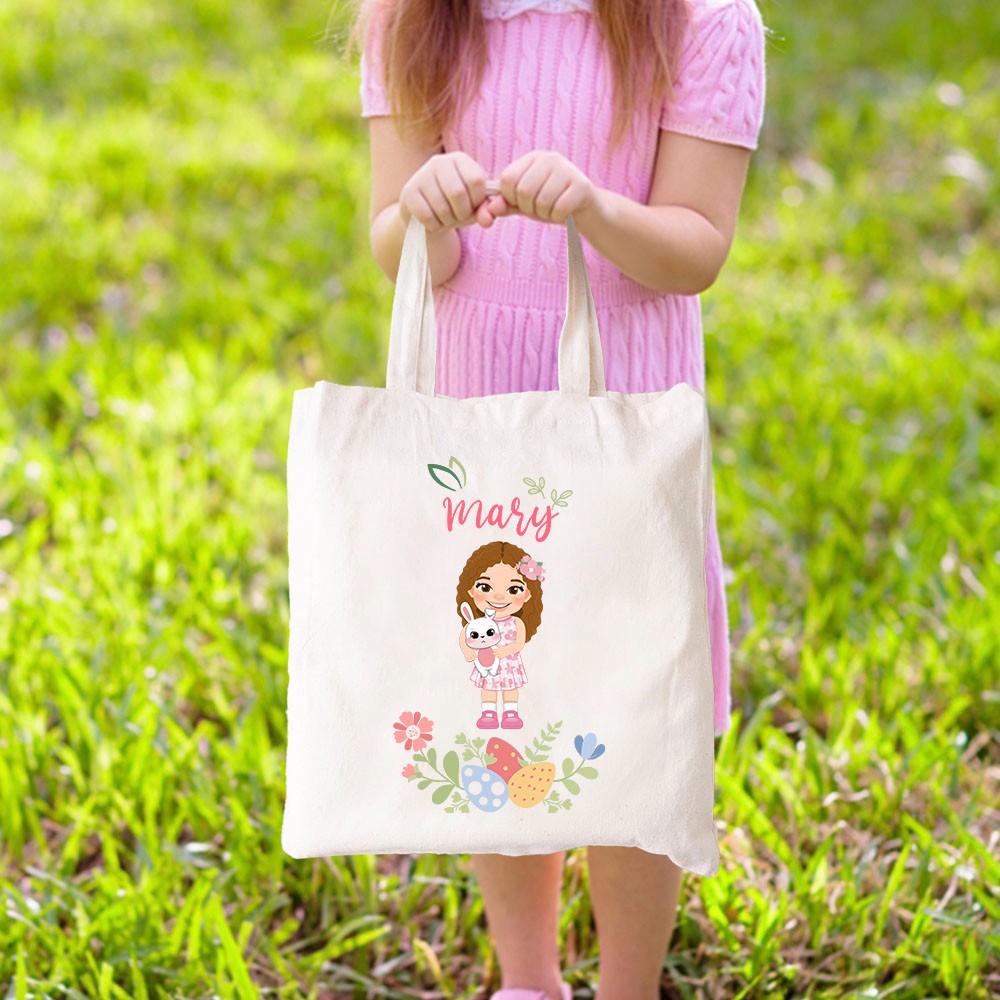 Personalization - This delightful canvas handbag can be personalized with a little girl’s name and image, featuring easter eggs and floral patterns. It adds a playful touchmaking it a special and unique accessory for any occasion.