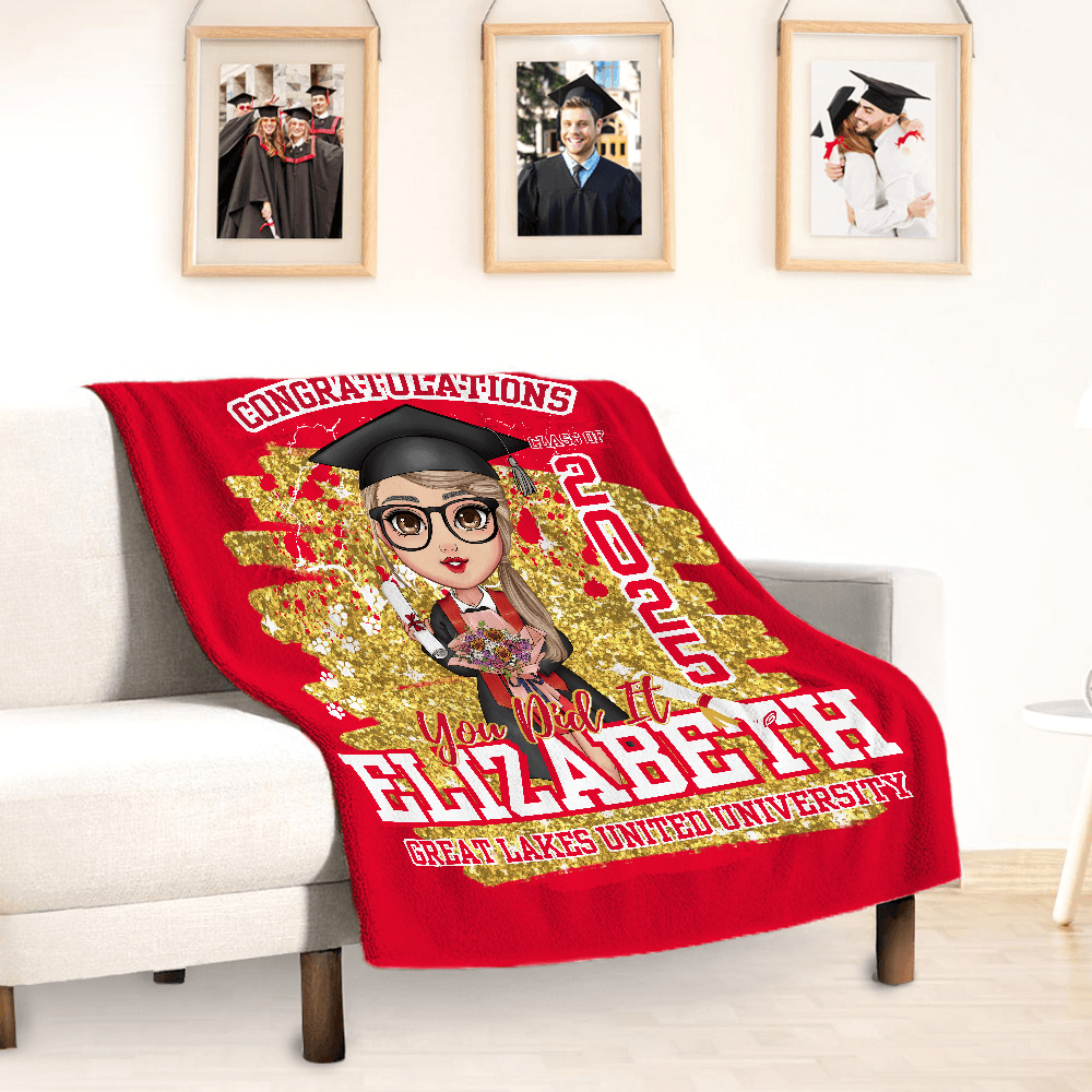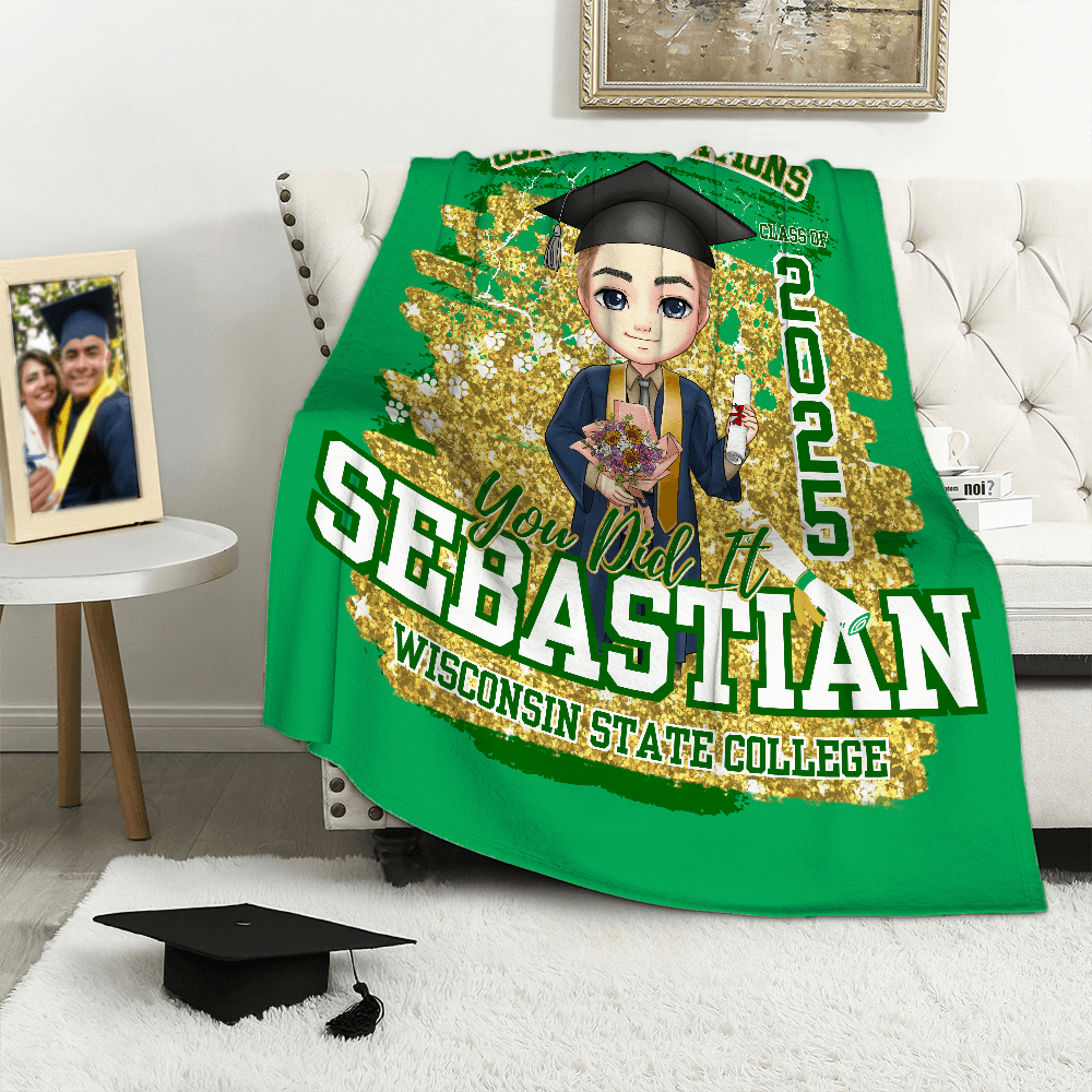Meaningful Graduation Gift - Whether for your child, sibling, or friend, this personalized graduation blanket makes a thoughtful, lasting gift that celebrates their hard work and bright future.