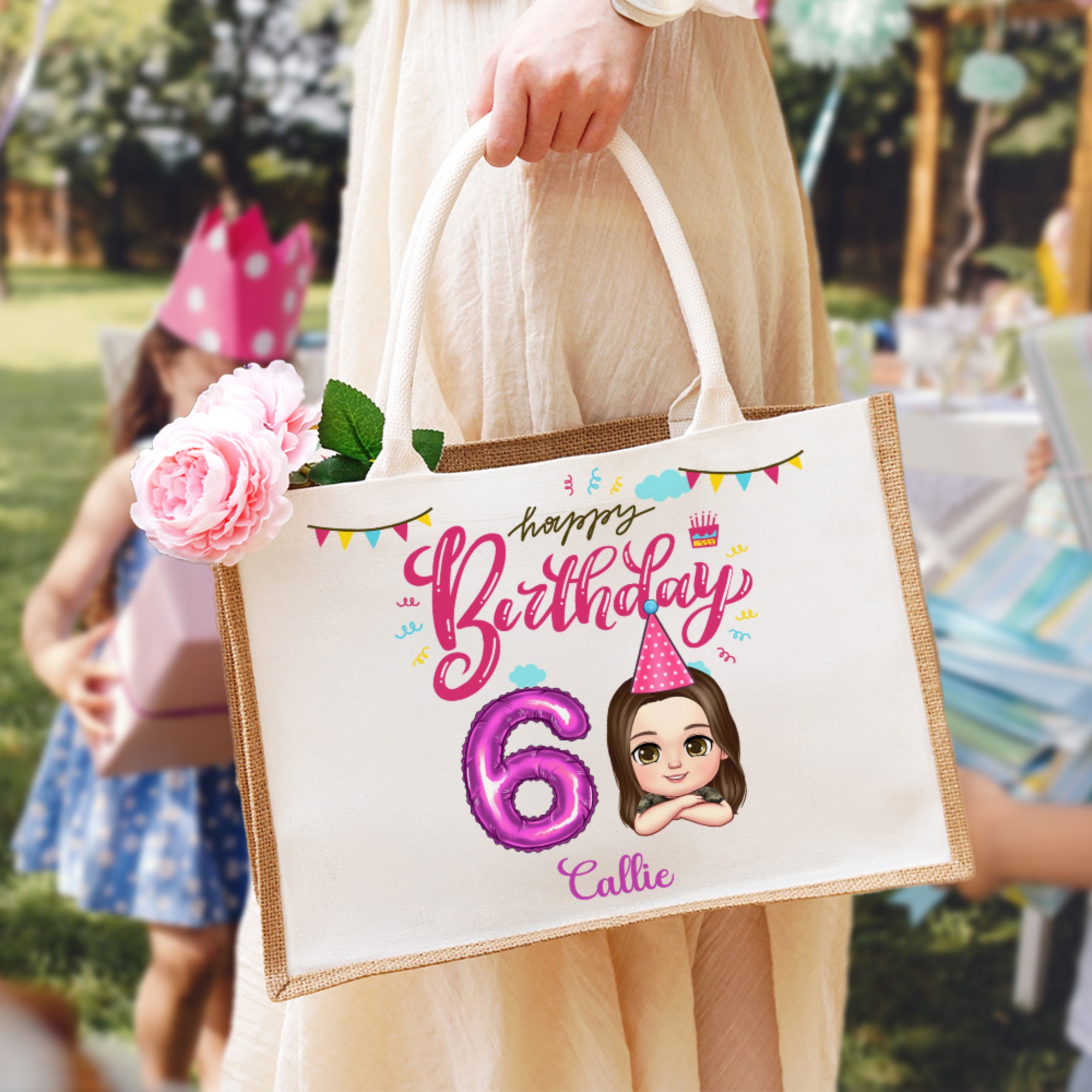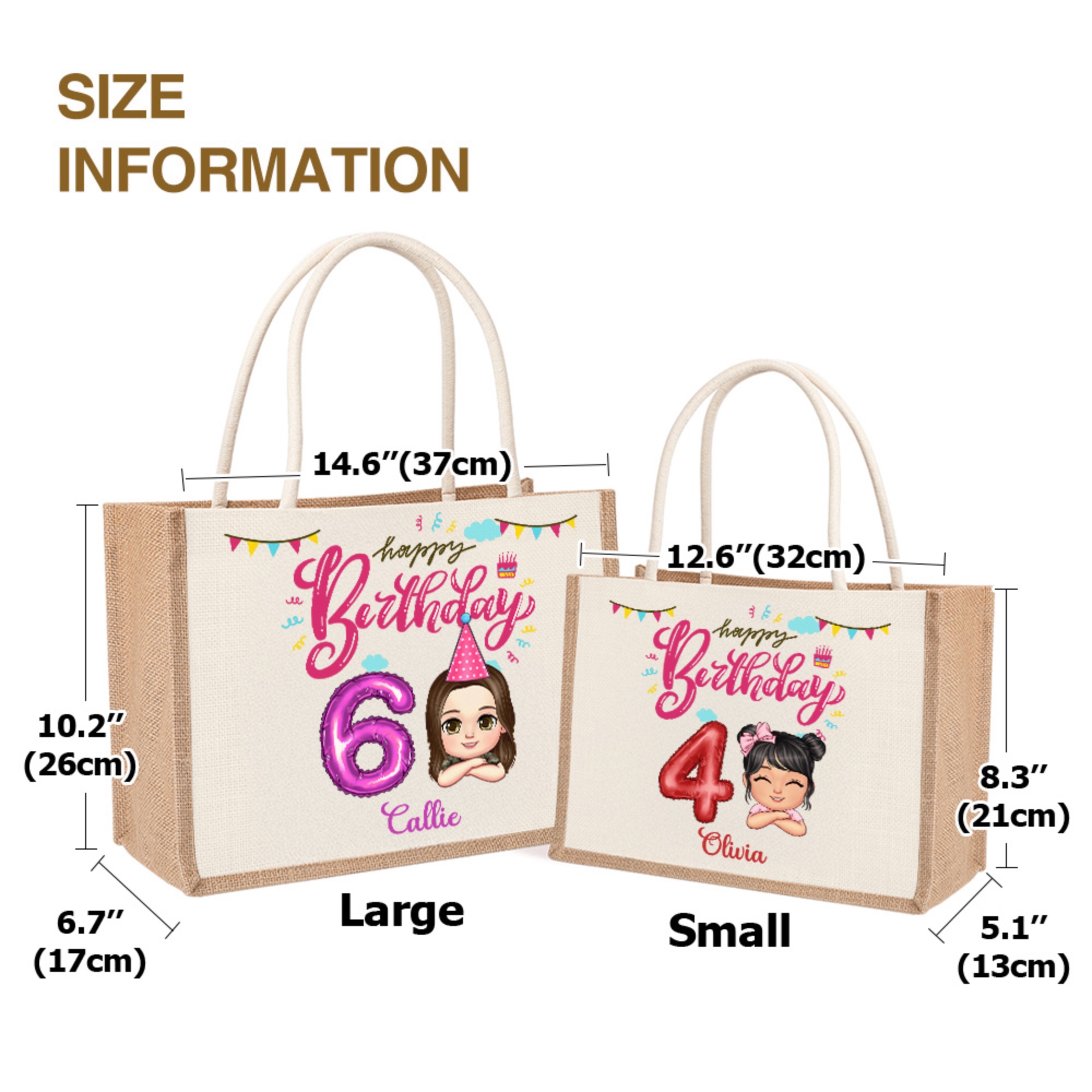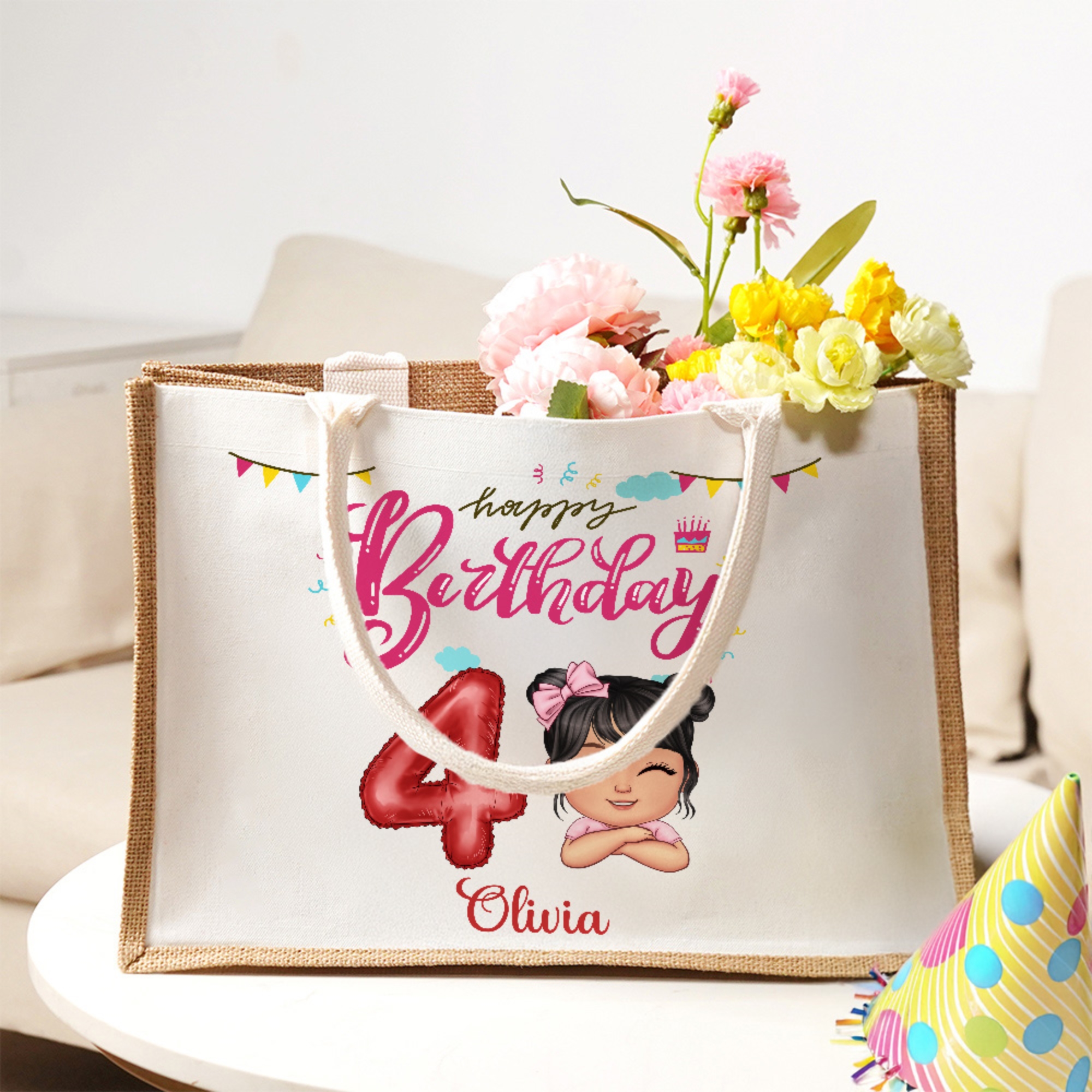 Customizable Design - This tote bag features a cute cartoon character that can be personalized with your child’s name and a number balloon, making it a unique and special item for birthdays or other celebrations.