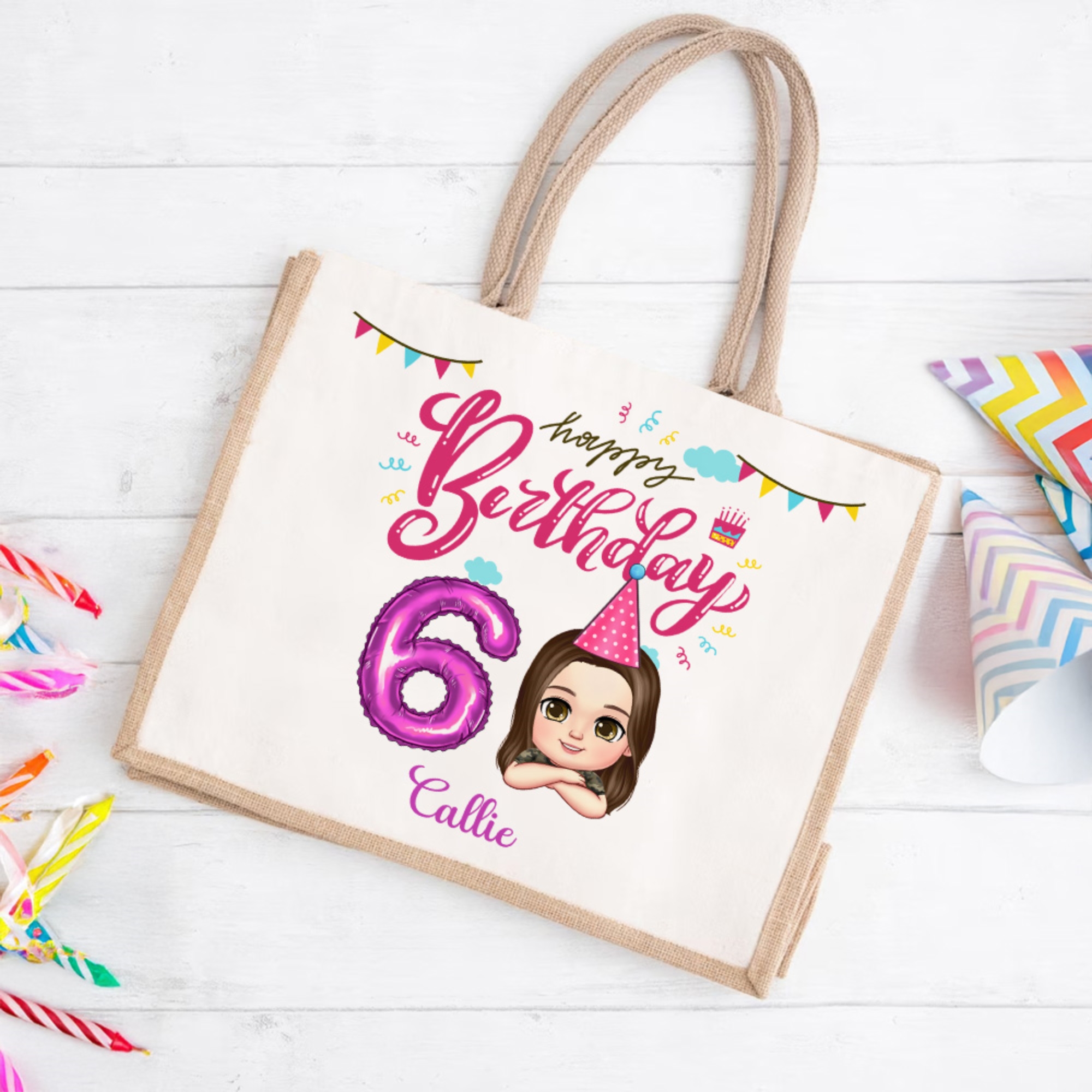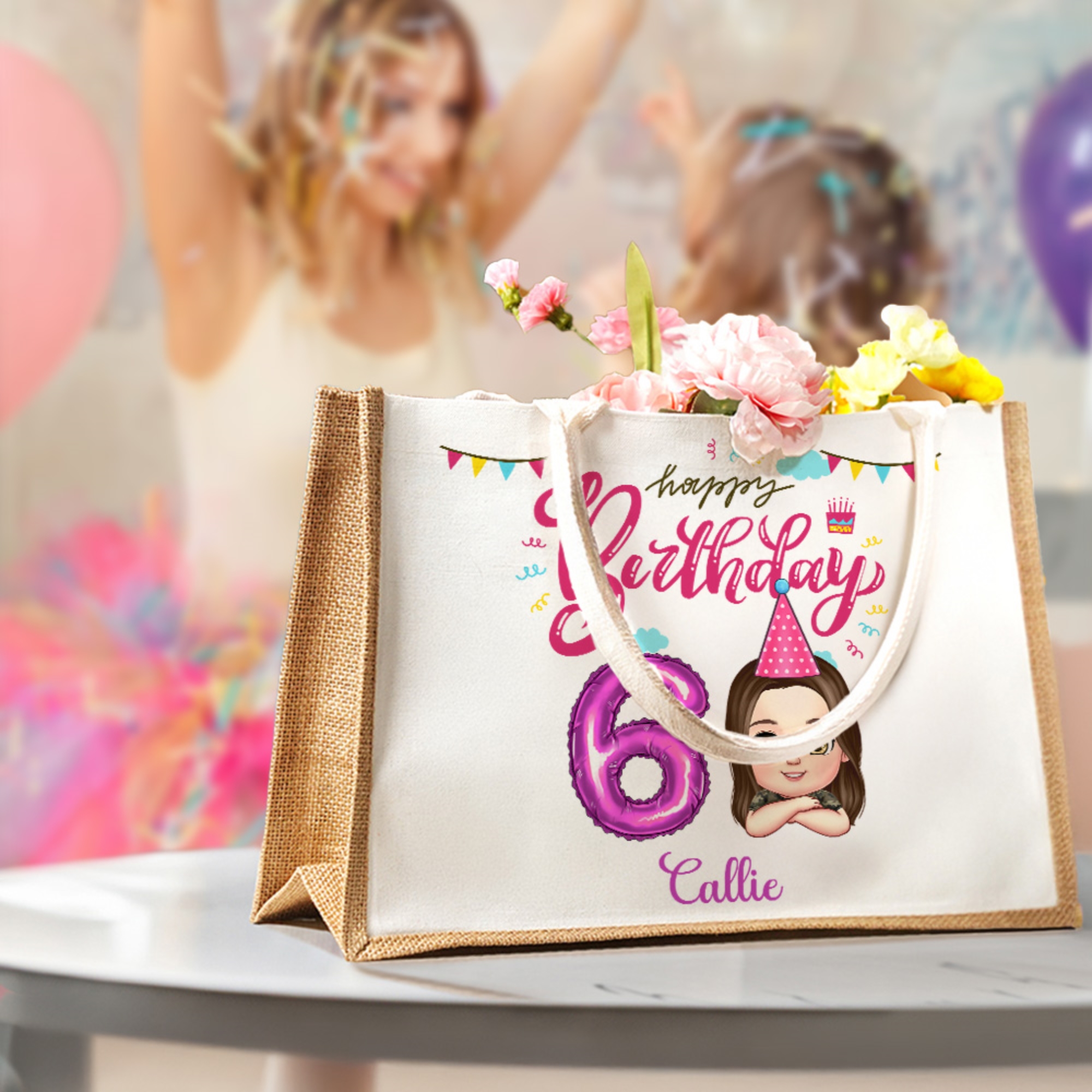 | Style | Personalized Name Cartoon Character Tote Bag with Number Balloon |