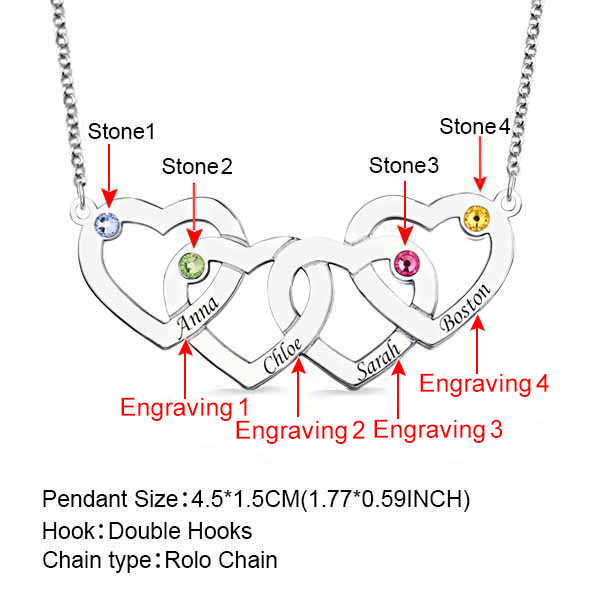 Add a minimalist touch of love to your look with the fascinating necklace! Hearts interlocking with each other and each heart take one birthstone. Choose one name and birthstone for each heart for a completely unique, custom look. This adorable heart birthstone necklace is top quality, meant to last a lifetime. Would make a beautiful gift for a mom, or as part of a memorial charm necklace!