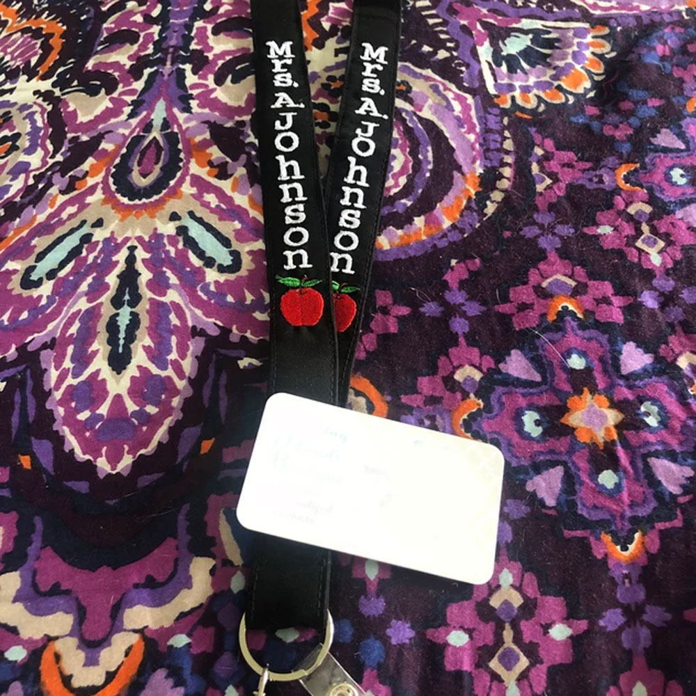Teacher Lanyard Id Badge Holder With Apple - This ID lanyard badge holder with Apple pattern is sewn from 4 layers of thick soft cotton fabric, which is very comfortable and lightweight. It is about 1 inch wide.